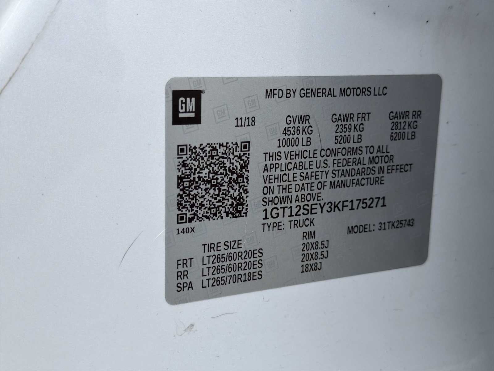- Spare Tire Size: LT265/70R18E