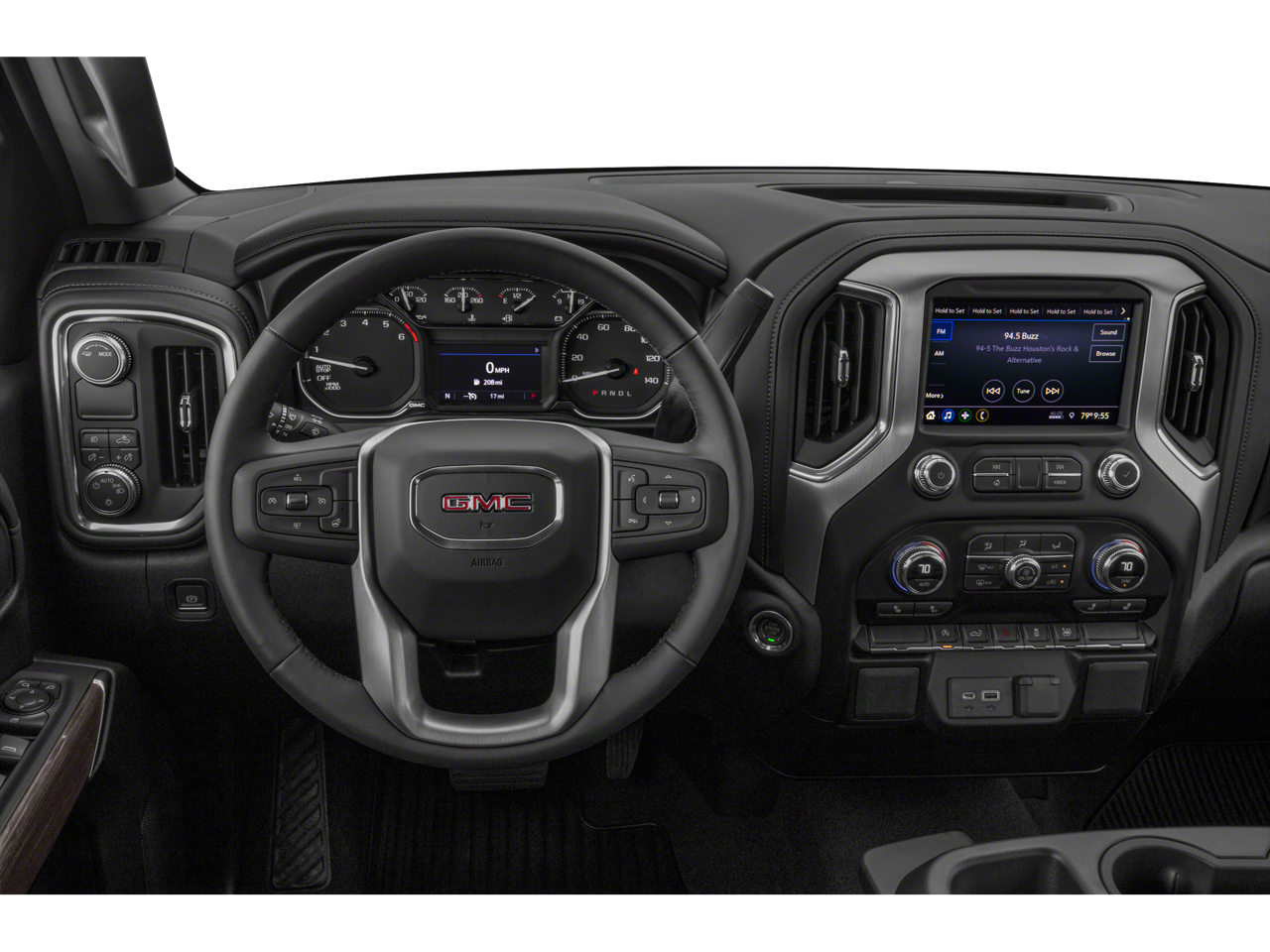 ELEVATION CONVENIENCE PACKAGE WITH BUCKET SEATS includes (A50) bucket seats, (D07) center console, (CJ2) dual climate control, (A2X) 10-way power driver seat including power lumbar, (KA1) heated driver and passenger seats, (KI3) heated steering wheel, (N37) manual tilt/telescoping steering column and (B1J) rear wheelhouse liners Crew Cab models include (R7O) Cloth Rear Seat Storage Package.), PREFERRED PACKAGE includes (UG1) Universal Home Remote, (A48) rear sliding power window, (KI4) 120-volt power outlet, (KC9) 120-volt bed-mounted power outlet, (IOS) 8 diagonal Premium GMC Infotainment System, (U2K) SiriusXM with 360L, (UVB) HD Rear Vision Camera, (MCR) USB Ports (Instrument Panel with bench seat) and (U2L) HD Radio Includes (UQA) Bose Premium Audio System.), ENGINE, 5.3L ECOTEC3 V8 (355 hp [265 kW] @ 5600 rpm, 383 lb-ft of torque [518 Nm] @ 4100 rpm); featuring all-new Dynamic Fuel Management that enables the engine to operate in 17 different patterns between 2 and 8 cylinders, depending on demand, to optimize power delivery and efficiency, X31 OFF-ROAD PACKAGE includes Off-Road suspension, (JHD) Hill Descent Control, (NZZ) skid plates, (K47) high-capacity air filter and X31 hard badge Includes (QAE) 275/60R20SL all-terrain, blackwall tires, (G80) locking differential and (NQH) 2-speed transfer case. Includes (N10) dual exhaust. LPO, ACCESSORY ASSIST STEP, OFF-ROAD, BLACK, AUDIO SYSTEM, PREMIUM GMC INFOTAINMENT SYSTEM WITH 8 DIAGONAL COLOR TOUCH-SCREEN, INCLUDES MULTI-TOUCH DISPLAY, AM/FM STEREO Bluetooth® streaming audio for music and most phones; featuring Android Auto® and Apple CarPlay® capability for compatible phones, advanced voice recognition, in-vehicle apps, personalized profiles for infotainment and vehicle settings, TRANSMISSION, 10-SPEED AUTOMATIC, ELECTRONICALLY CONTROLLED with overdrive and tow/haul mode. Includes Cruise Grade Braking and Powertrain Grade Braking. GMC Elevation with Onyx Black exterior and Jet Black interior features a 8 Cylinder Engine with 355 HP at 5600 RPM*. Non-Smoker vehicle, Autocheck 1-Owner