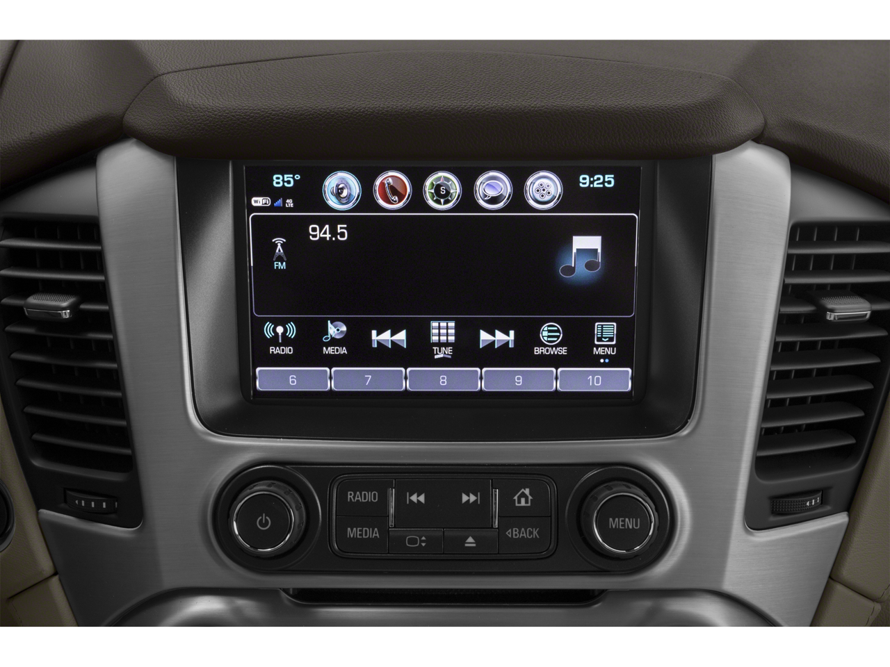 WHEELS, 22 X 9 (55.9 CM X 22.9 CM) 6-SPOKE CHROME MULTI-FEATURED DESIGN, (CF5) power sunroof, (U42) rear seat entertainment system and on SLT (IO6) Audio system with navigation, with bright accent strip and perimeter lighting, with remote control, overhead display, Wi-Fi wireless projection capability, two 2-channel wireless digital headphones, auxiliary HDMI/MHL audio/video input and 2 USB ports, with Automatic Emergency Braking, radar based system automatically adjusts speed to maintain preset following gap, AM/FM/SiriusXM stereo with seek-and-scan and digital clock, includes Bluetooth® streaming audio for music and select phones; voice-activated technology for radio and phone; and Shop. Featuring Apple CarPlay® and Android Auto® capability for compatible phone; 5 USB ports and 1 auxiliary jack (STD), with Active Fuel Management, Direct Injection and Variable Valve Timing, includes aluminum block construction (420 hp [313 kW] @ 5600 rpm, 460 lb-ft of torque [624 N-m] @ 4100 rpm) (STD), electronically controlled with overdrive, tow/haul mode and tap up/tap down shifting (STD). Serviced here, Non-Smoker vehicle, Autocheck 1-Owner