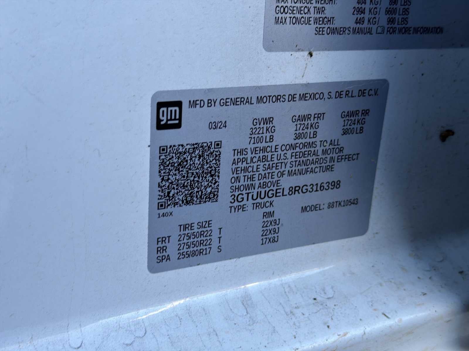 - Spare Tire Order Code: QAQ